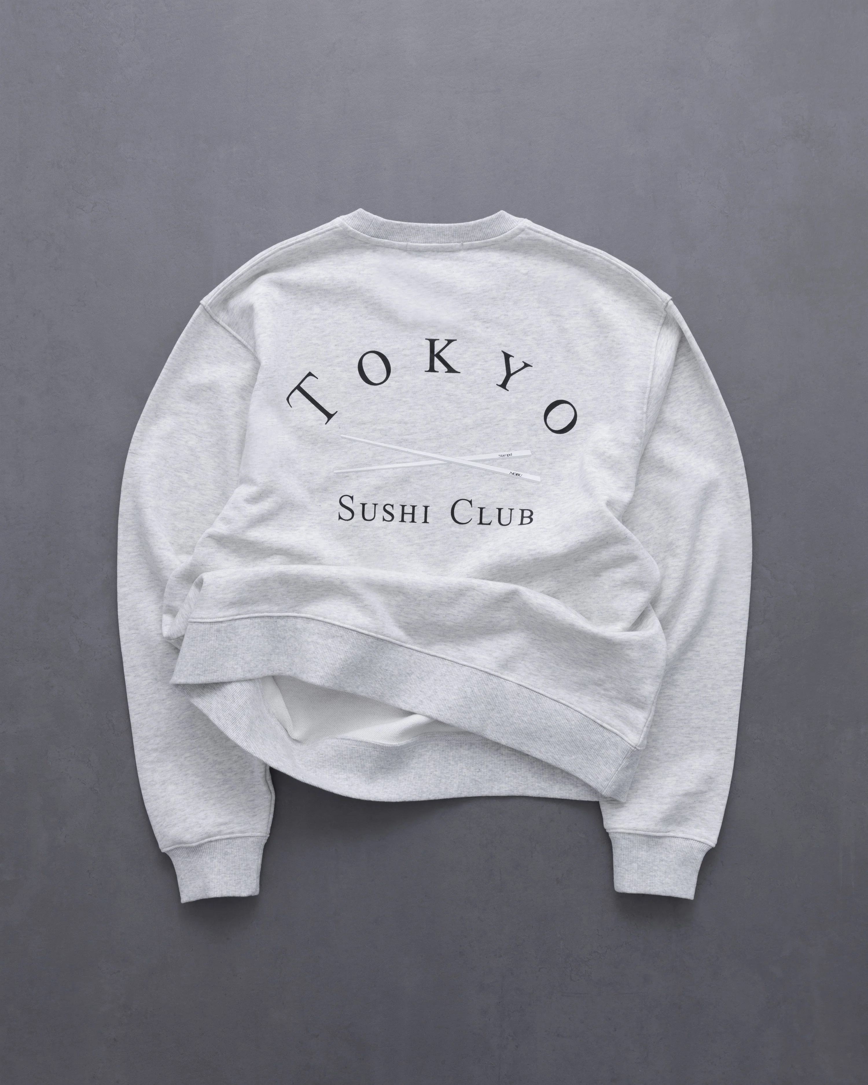Small Tokyo Sushi Club logo printed on front left chest.